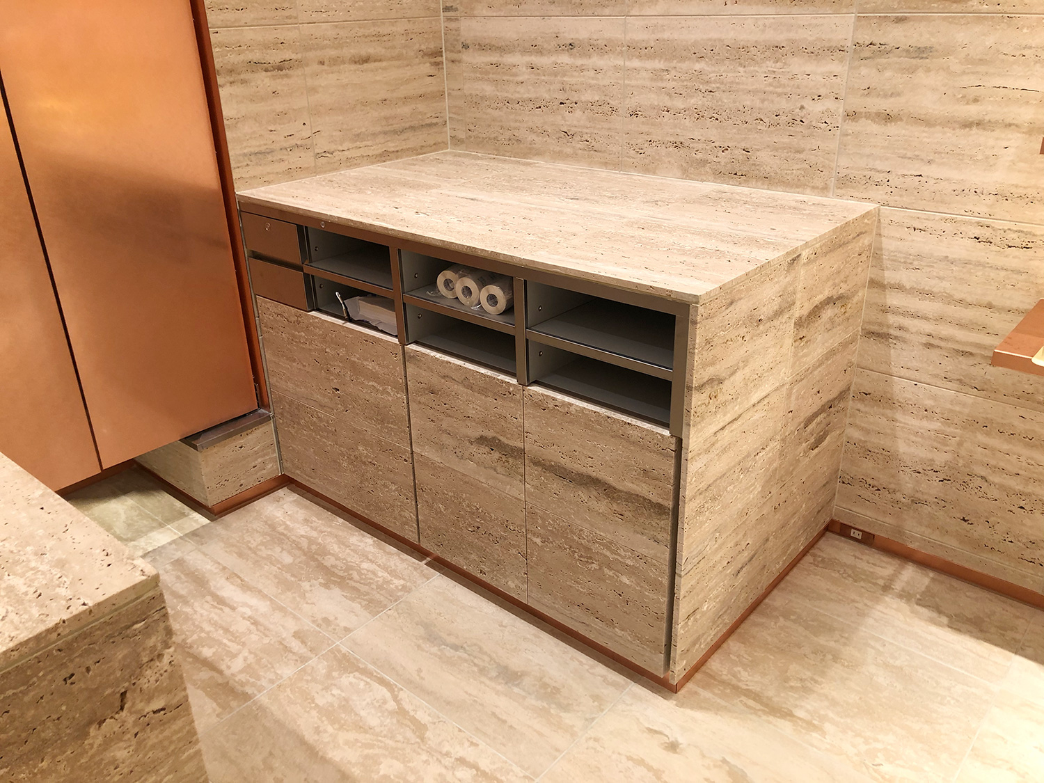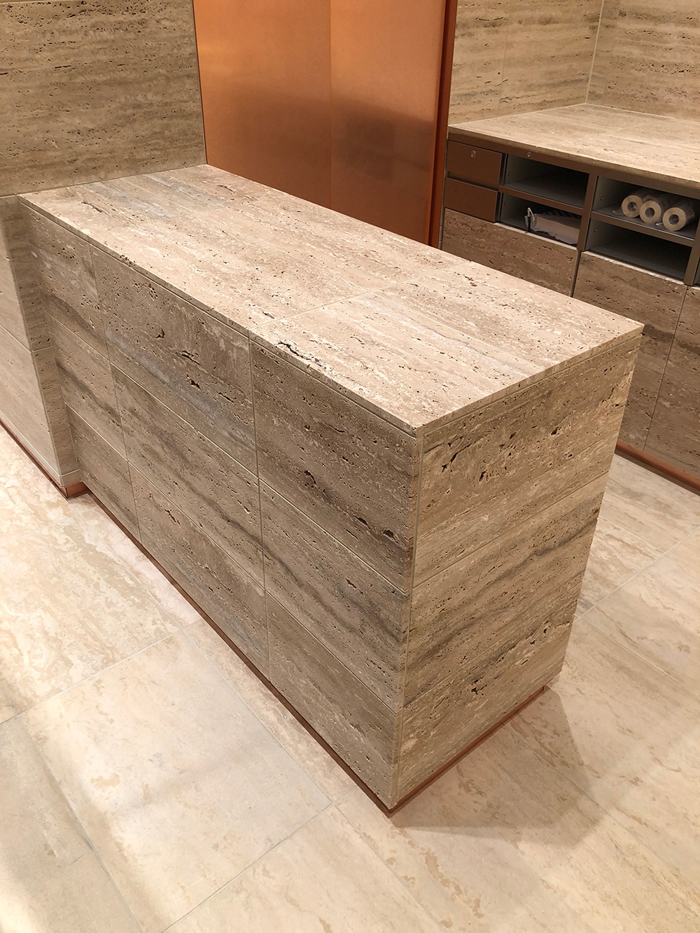 鎌倉発のアロマ生チョコレートブランドMAISON CACAO(メゾンカカオ)様の、トラバーチン、銅板を贅沢に使用したNEWomen横浜店の工事をお手伝いさせて頂きました。弊社は、特殊板金・金物制作も得意としています。